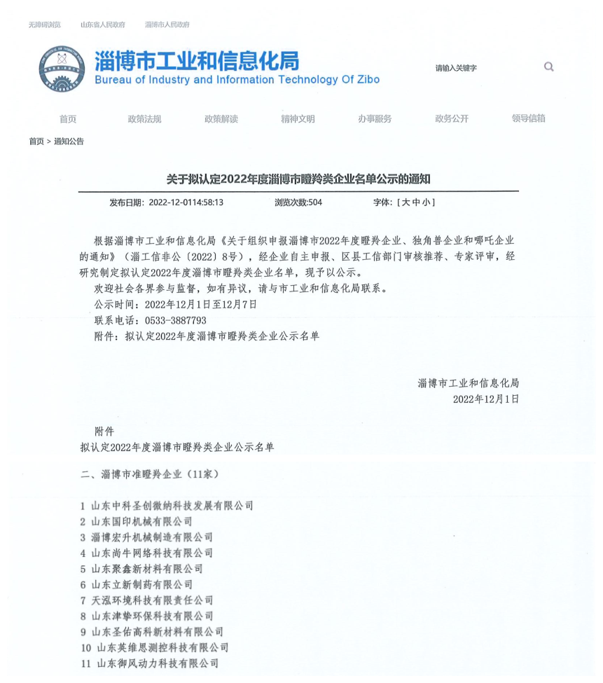 我司津摯環(huán)保被評(píng)為淄博市準(zhǔn)瞪羚類(lèi)企業(yè)