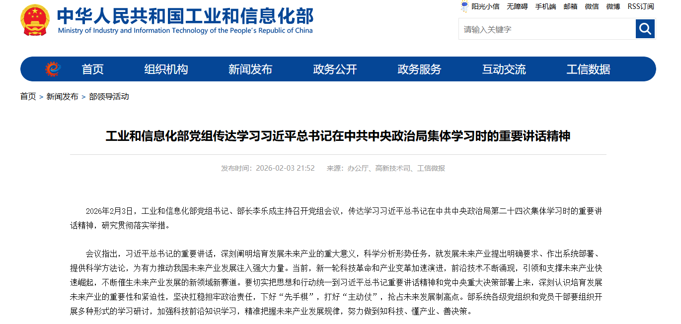 2026年2月3日,工業和信息化部黨組書記、部長李樂成主持召開黨組會議,傳達學習習近平總書記在中共中央政治局集體學習時的重要講話精神,并就培育發展未來產業作出系統部署。會議釋放出明確信號:氫能已被列為國家未來產業梯次布局的重要賽道,將在新型舉國體制下獲得技術攻關與應用示范的“雙輪驅動”。
