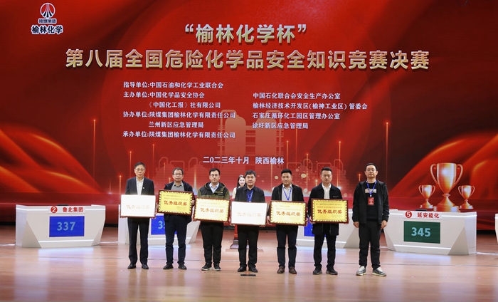 本屆競賽由中國石油和化學(xué)工業(yè)聯(lián)合會(huì)指導(dǎo),中國化學(xué)品安全協(xié)會(huì)、石化聯(lián)合會(huì)安全生產(chǎn)辦公室、《中國化工報(bào)》社有限公司、榆林經(jīng)濟(jì)技術(shù)開發(fā)區(qū)(榆神工業(yè)區(qū)) 管委會(huì)主辦, 陜煤集團(tuán)榆林化學(xué)有限責(zé)任公司、石家莊循環(huán)化工園區(qū)管理辦公室、徐圩新區(qū)應(yīng)急管理局、蘭州新區(qū)應(yīng)急管理局協(xié)辦,陜煤集團(tuán)榆林化學(xué)有限責(zé)任公司承辦。競賽活動(dòng)今年6月啟動(dòng)以來,得到了石油和化工行業(yè)企業(yè)的積極響應(yīng),全行業(yè)參與答題超6萬人,經(jīng)過層層篩選后在陜西榆林、河北石家莊、江蘇連云港、甘肅蘭州組織了4場復(fù)賽,角逐出參加決賽的6支隊(duì)伍。榆林經(jīng)濟(jì)技術(shù)開發(fā)區(qū)(榆神工業(yè)區(qū)) 管委會(huì)、陜煤集團(tuán)榆林化學(xué)有限責(zé)任公司、石家莊高新區(qū)循環(huán)化工園區(qū)管理辦公室、蘭州新區(qū)應(yīng)急管理局、徐圩新區(qū)應(yīng)急管理局、南京工業(yè)大學(xué)、陜西興化集團(tuán)有限責(zé)任公司、陜西北元化工集團(tuán)股份有限公司、華峰集團(tuán)有限公司9家單位獲競賽優(yōu)秀組織獎(jiǎng)。